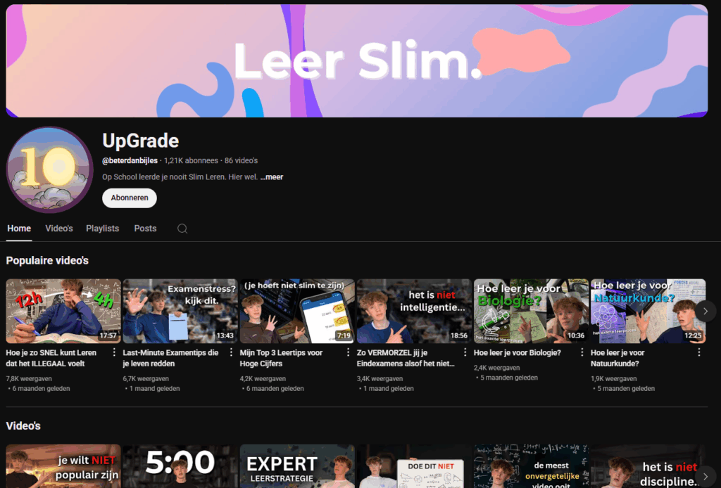 112 videos zijn op het moment van schrijven al gepost, en dat nummer zal ongewijfeld blijven stijgen. Elke video kost minimaal 5 uur totaal om te maken: scripten, thumbnails, recorden, editen, posten… Ik stop er dus megaveel tijd in. Maar ik doe het graag om medeleerlingen te helpen.
